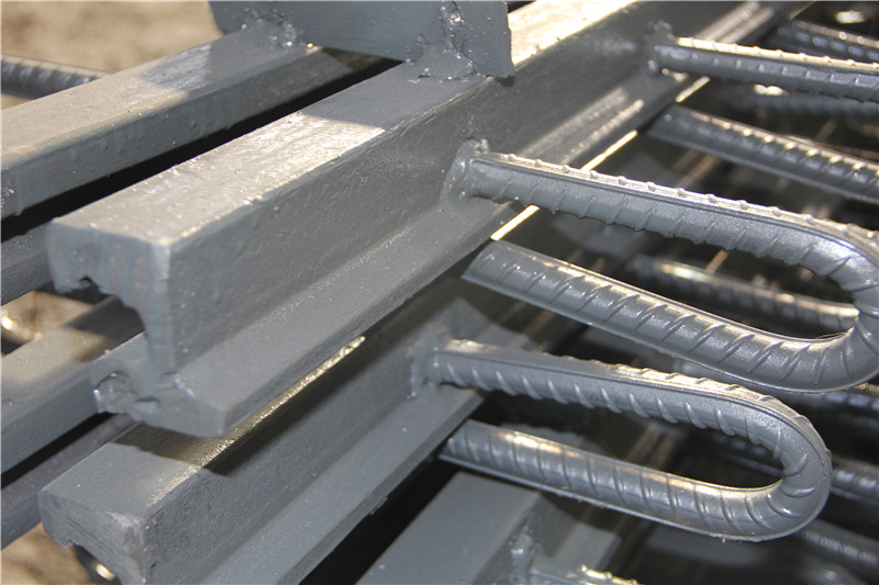 ⑥再在伸縮裝置箱體或錨固板處,立焊Ф16以上的鋼筋進行高度定位,橫焊Ф16鋼筋進行寬度定位。