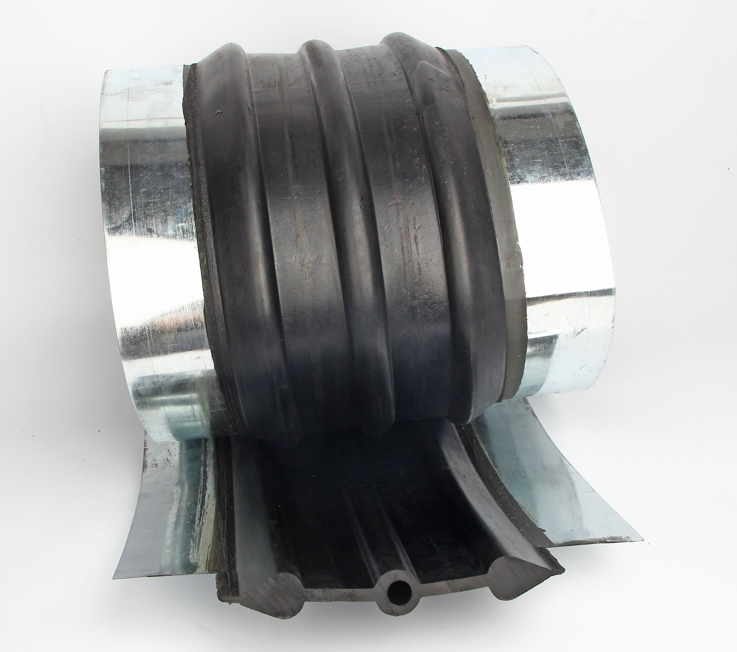 鋼邊止水帶性能的特點是具有一定的拉力的橡膠,復合左右有一定寬帶的金屬邊,與整體件緊固件相結合。